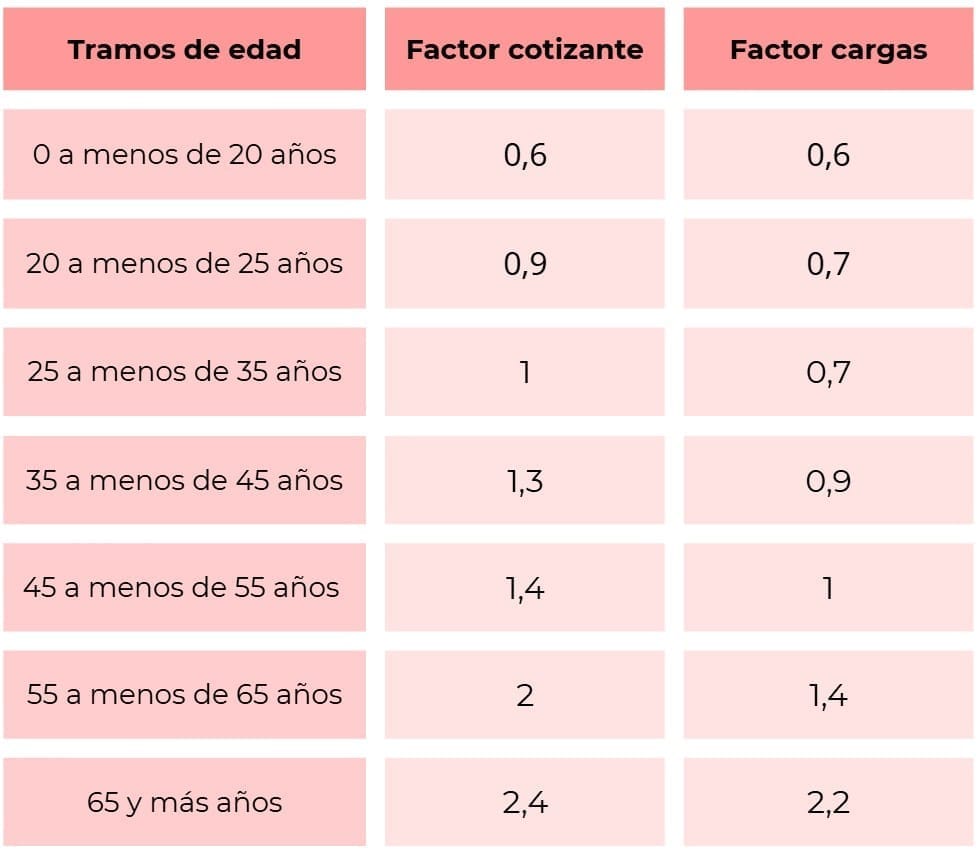 Recordemos los factores según tramo de edad: