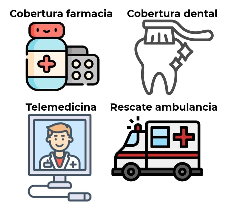 4)Beneficios adicionales contratados: corresponde al monto adicional que debe pagar el afiliado por incorporar a su plan seguros o beneficios especiales que desee, por ejemplo seguro de cesantía, cobertura adicional dental, seguro de telemedicina, rescate de emergencias, etc.